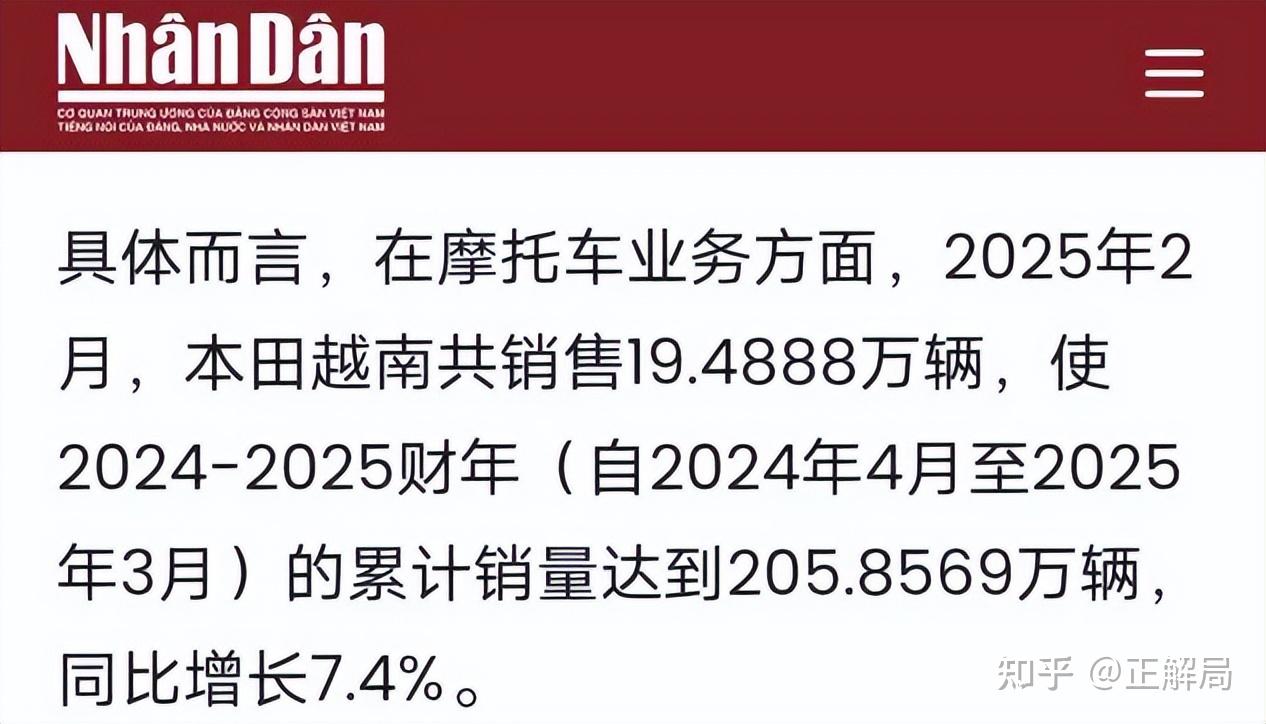 本田2024年在越南卖掉了205.8万辆摩托车,在泰国卖了158万辆,在印尼和菲律宾的销量则分别是460万辆和240万辆。仅这四国的销量加起来,就已经突破了一千万辆,接近本田去年全球销量的一半,可见本田在东南亚的本地化布局是享受了正向收益的。