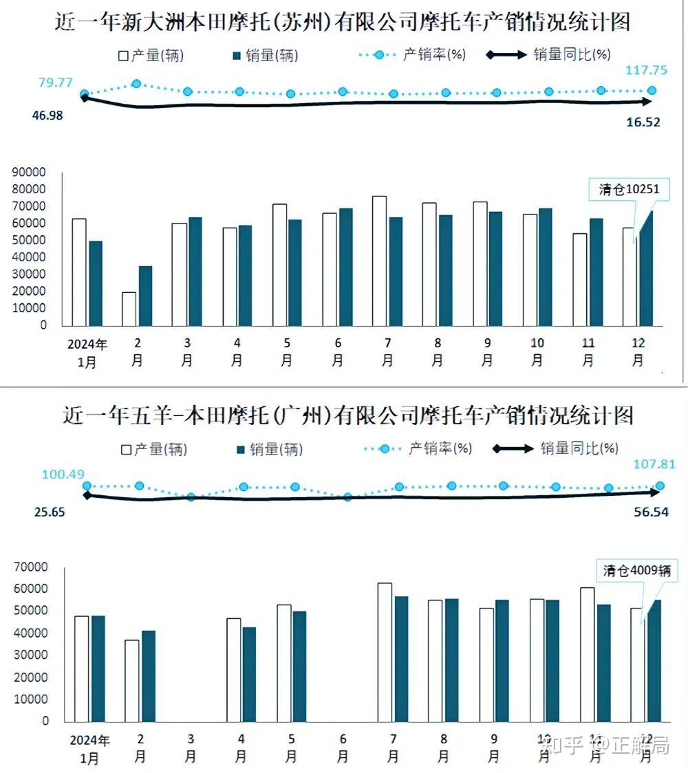 新大洲本田2024年的摩托车销量达到了73.4万辆,五羊本田同期的销量也有60.8万辆。